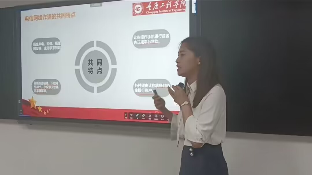 首先,主持人讲解了什么是电信网络诈骗。它是指利用互联网技术进行欺诈行为的一种犯罪行为。常见的手段包括刷单、网恋欺诈、假冒银行客服、虚假投资理财等等。