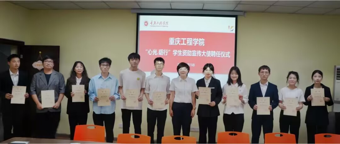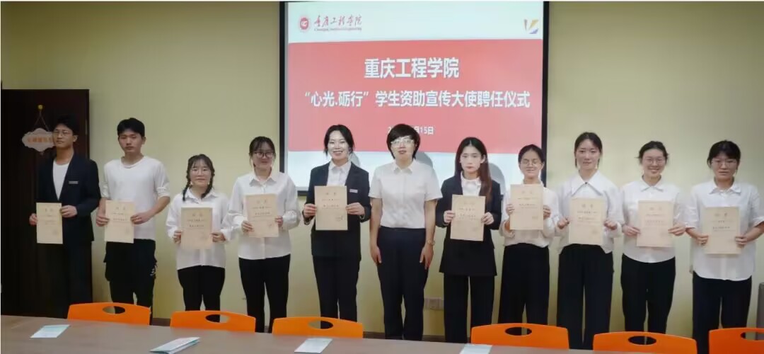 经过学生处的选评,最后电子信息学院赵建刚等22名同学被聘为重庆工程学院2023年心光.砺行“学生宣传资助大使”称号,学工部部长黄燕向他们表示祝贺并颁发心光.砺行“学生资助宣传大使”聘书。