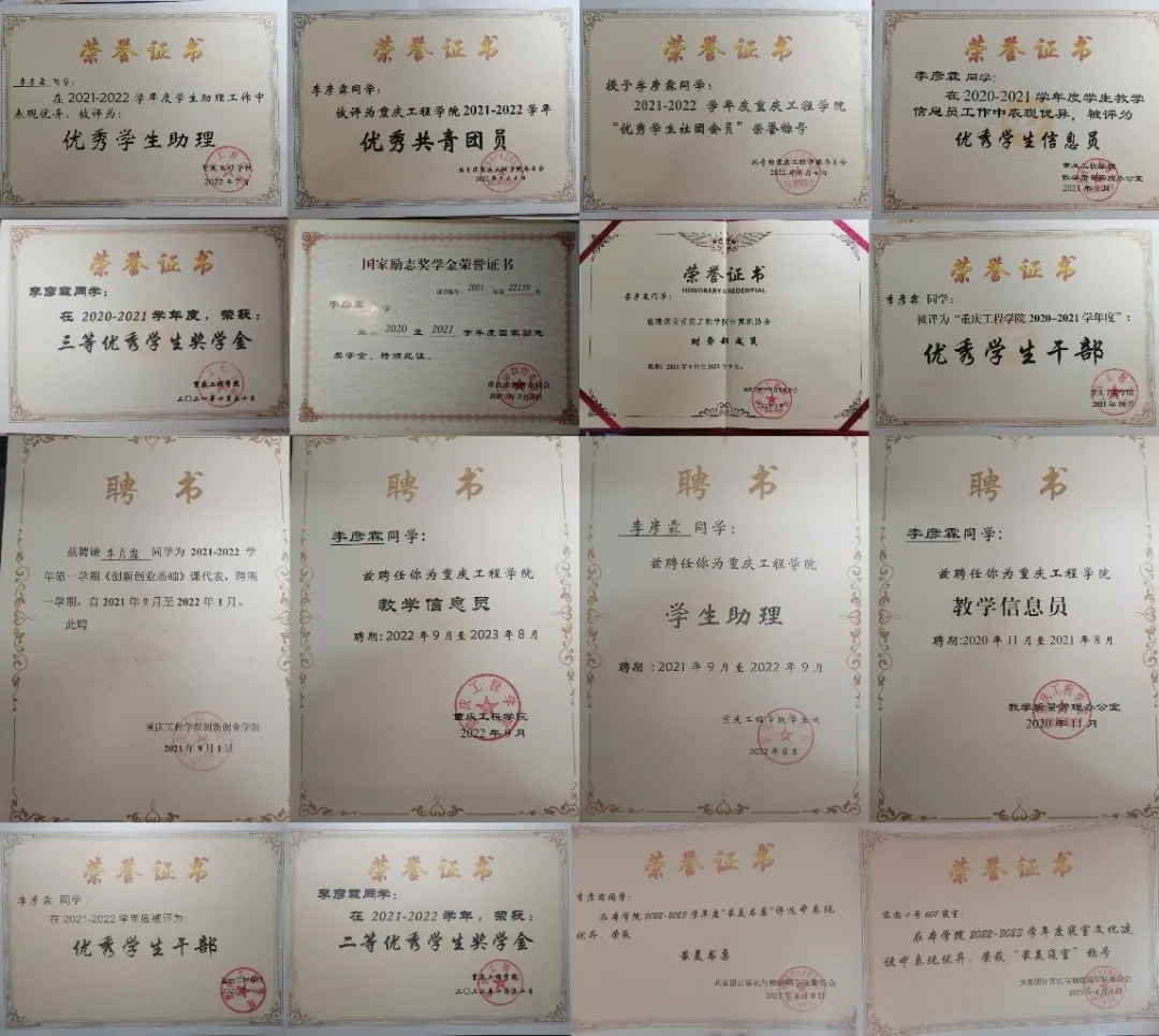 在校期间,她曾获国家励志奖学金、学校优秀学生奖学金、优秀共青团员、优秀学生社团会员等多项荣誉;曾担任校团委学生骨干、大学生勤工助学服务中心学生助理;课余时间积极参与“校园之春”云上马拉松;积极投身志愿服务, 参与疫情期间的核酸检测志愿服务。