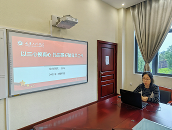 培训会上,软件学院辅导员余巧老师作为主讲嘉宾给在座的老师们分享了自己十一年来作为辅导员的工作经验,她提出“以三心换真心”的学生工作理念,把“爱心、耐心、责任心”贯穿在教育学生的日常工作中,她通过实际的案例分享,向老师们展示了一名老辅导员在学生工作战线上的点点滴滴,让在座的各位老师受益匪浅。