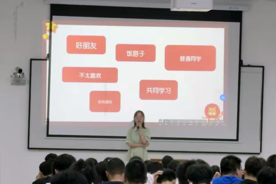 梁老师从“提到室友你想到的第一个词是什么”开篇,与同学们互动,询问同学们对于室友的评价。接着向同学们分享了寝室关系的六个层次,通过六个比喻让同学们明白营造良好宿舍关系的重要性。最后,梁老师给同学们提出建议:在处理寝室关系中不能太过于偏激,要学会沟通,必要时可以请辅导员或班导师协调。