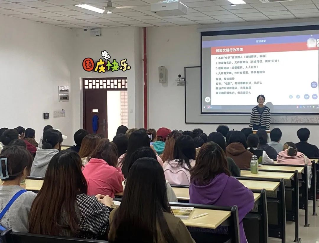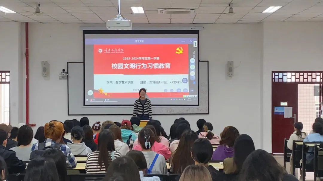 为使学生意识到文明礼仪就在我们身边,养成文明习惯,数字艺术学院22动画、22艺科辅导员张雪银老师于2023年9月25日晚在第六教学楼203教室开展了“校园文明行为习惯教育”主题班会。