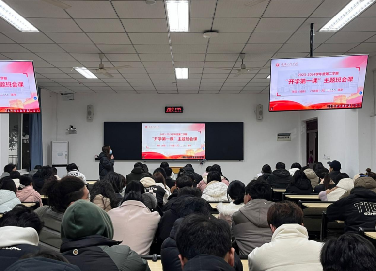 辅导员谭净根据此次班会的目的着重对近期相关事项、春季传染病预防、新学期新气象进行讲述。提醒了同学们近期的注意事项,确保同学们都领到书本,上课前要带齐书本、笔记本等。