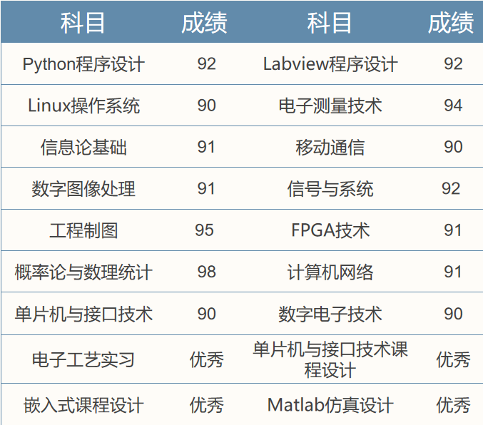 在校期间,荣获一等优秀学生奖学金3次,专业成绩和综测成绩均排名专业第一。