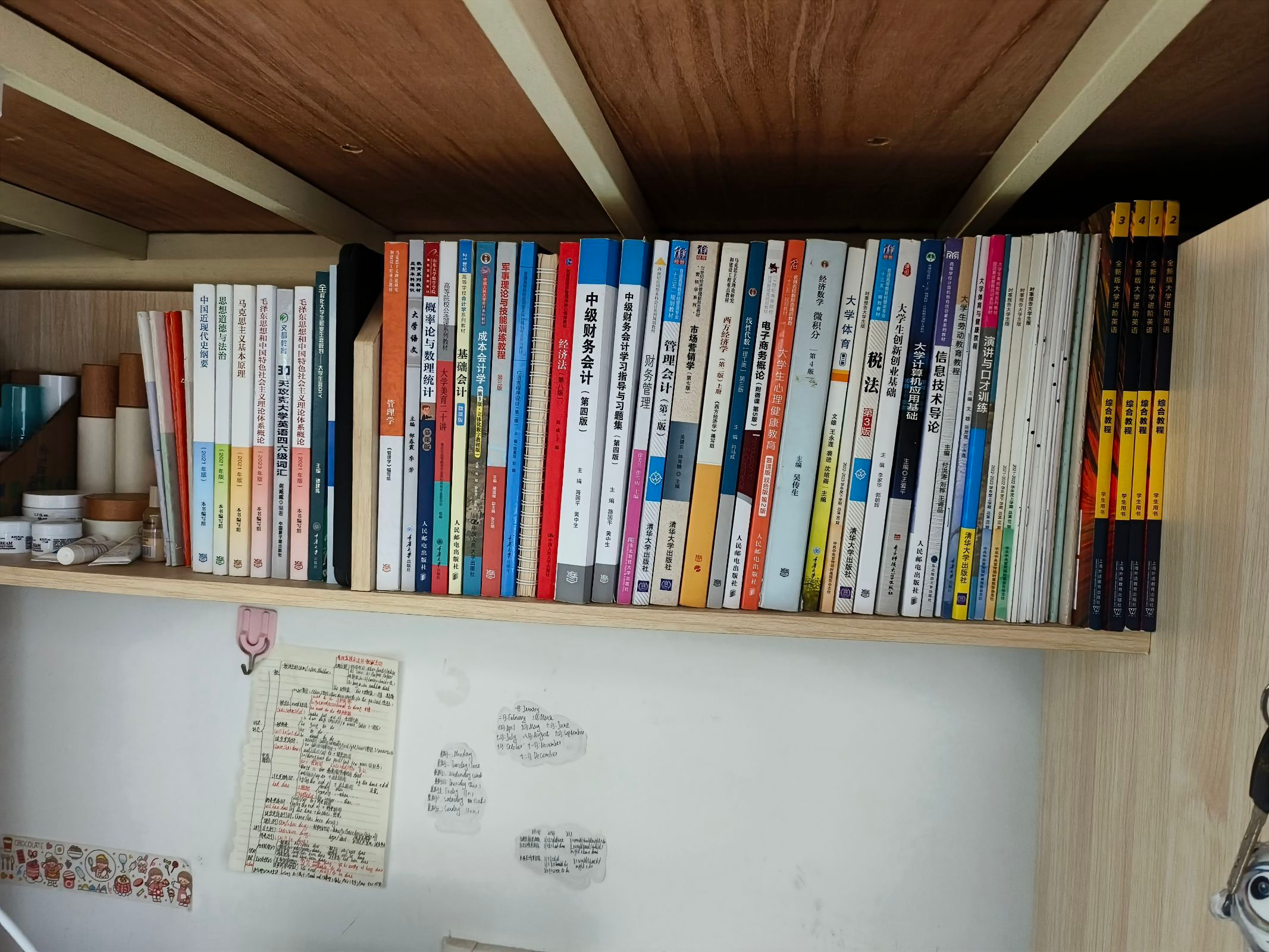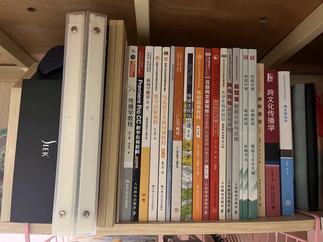 书籍是我们每个宿舍的宝藏,每一本都饱含着我们未来梦想的起点和终点,是我们不断攀爬求知的阶梯,让“拼”的足迹踏实而稳定,看着它们整齐的列队,犹如人生序列里顺风顺水的前兆。