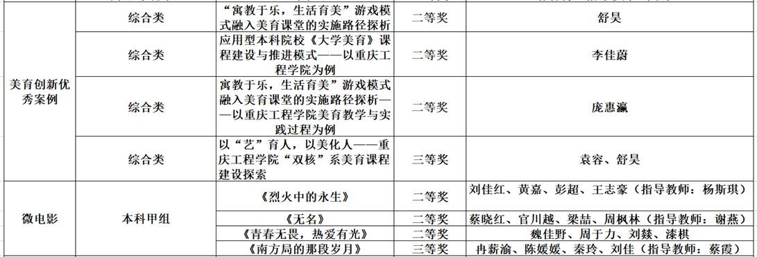 本届参演作品主题鲜明、形式多样、内容丰富,既充分展现全市高校美育工作取得的丰硕成果,更充分彰显了当代大学生生机蓬勃、积极向上的良好精神风貌,取得丰硕成果。自本届展演活动启动以来,我校结合自身特色,挖掘青春故事、展现青年活力、传递青春温度,为青年学子搭建了文化艺术交流平台,编排创作一批具有鲜明时代特征,弘扬中国精神的作品,形成了良好的参赛氛围,积极展现重庆工程学院学子昂扬向上的精神风貌。
