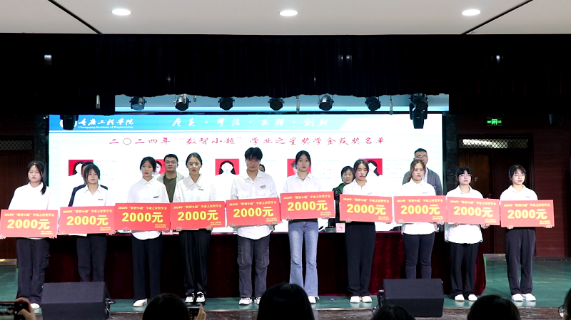 在仪式现场,杨桂宣读了《重庆工程学院关于表彰2024年“数智小超”学业之星奖学金获得者的決定》。随后,出席仪式的领导和嘉宾为获得奖学金的学生颁发了奖状和奖金。