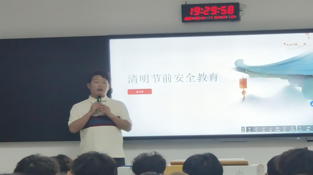 新媒体电商学院网媒1—4班,数字艺术学院动画1—2班全体同学于近日在一教301教室开展了主题“清明节前安全教育”的班会活动,活动由辅导员黄天桥主持。