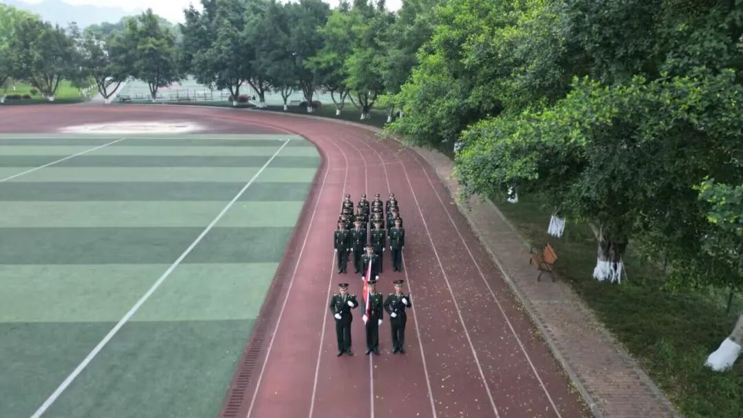 随着国歌的奏响,五星红旗冉冉升起,全体师生肃立行注目礼,展现了对祖国的深深敬意。