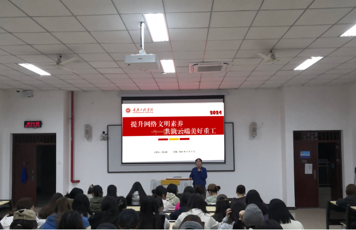 刘彦超老师发表了题为“提升网络文明素养,共筑云端美好重工”的主题演讲,在班会上,同学们共同学习了如何识别网络诈骗,如何保护个人隐私,学会了如何在网络世界中传播正能量,如何用文明的语言和行为影响他人。