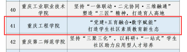 据悉,本次重庆共有重庆大学、西南大学等6所高校入选,重庆市仅有重庆大学、西南大学、重庆工程学院3所高校连续2年获评。