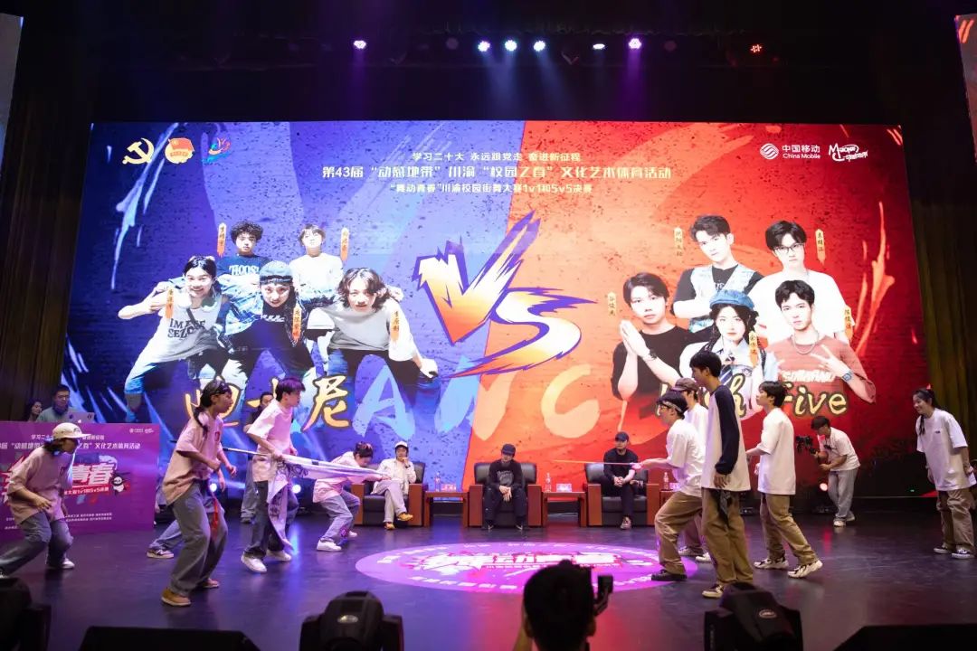 热情燃烧,舞动激情!5月12日,第43届“动感地带”川渝“校园之春”文化艺术体育活动“舞动青春”川渝校园街舞大赛1v1和5v5决赛在我校学术报告厅完美收官!