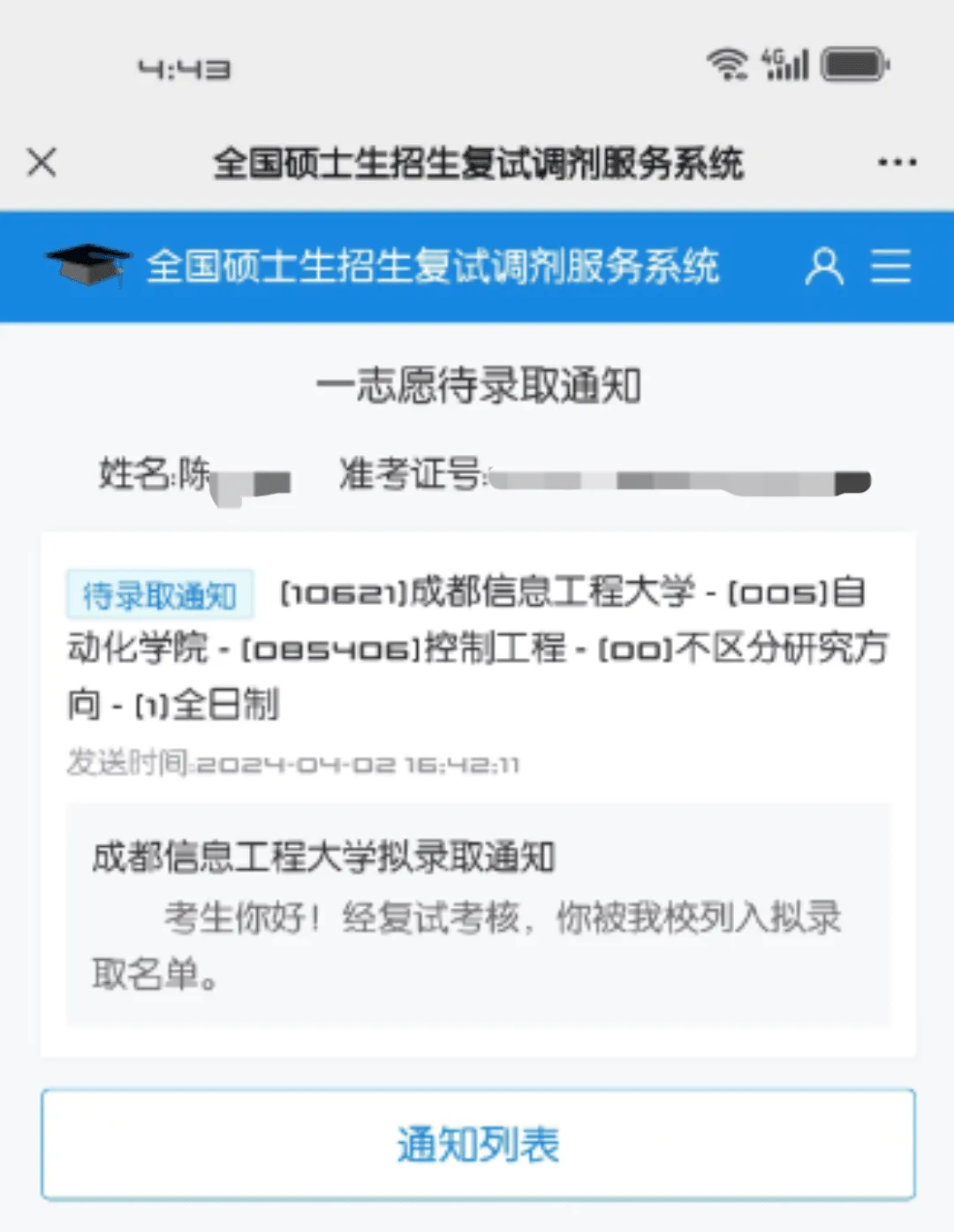 陈宇腾:2020级自动化专业。考研学校:成都信息工程大学。