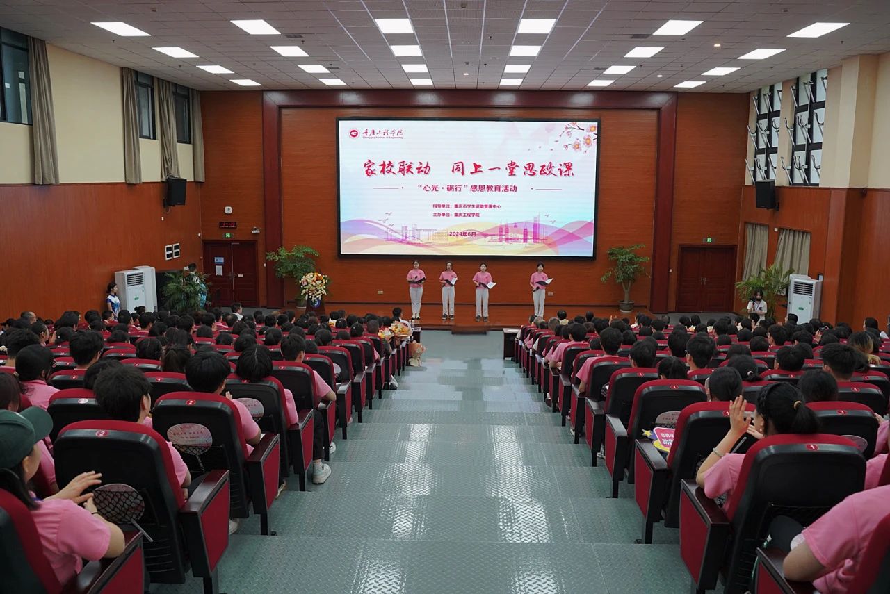 6月2日,由重庆市学生资助管理中心指导,重庆工程学院主办的“家校联动 同上一堂思政课”“心光·砺行”感恩教育活动在重庆工程学院成功举行,40余名家长受邀走进校园,家校携手开展感恩教育活动。重庆市学生资助管理中心主任黄传军、科长付桂玲;重庆工程学院党委书记陈长虹,党委副书记、常务副校长张业平,副校长谭明术、王琼花、王建东出席,相关职能部门及二级学院负责人参加,300余名青年大学生现场聆听,反响热烈。