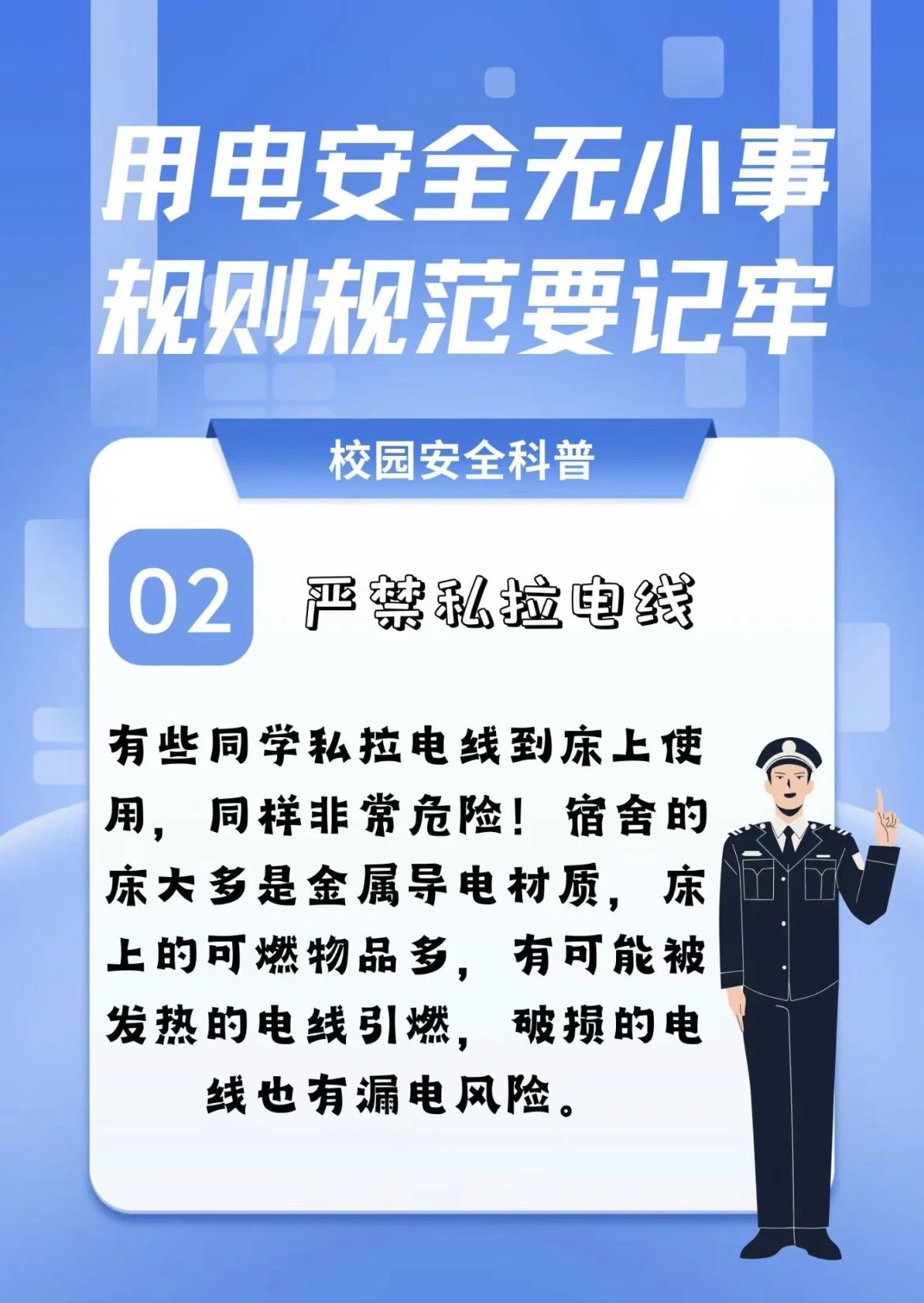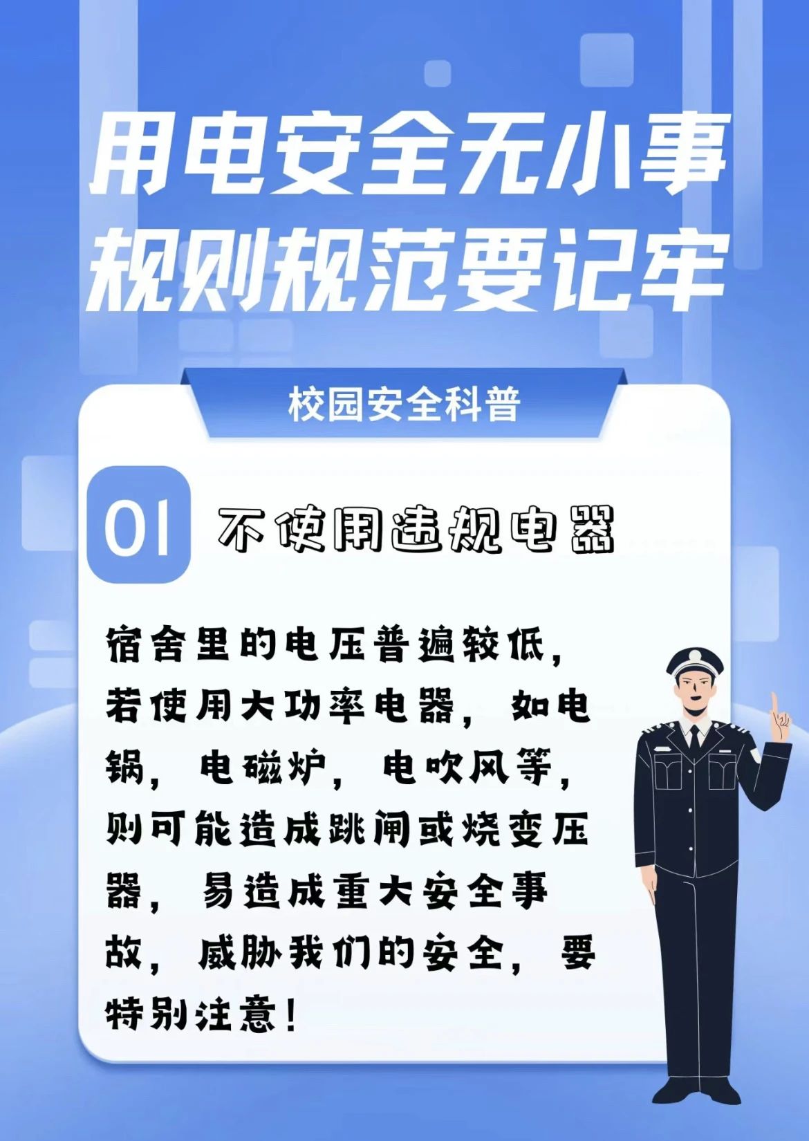 学校对宿舍区的安全管理采取了严格措施,明令禁止违禁电器和私拉乱接插电等危险行为。同时,学校还会持续通过定期进行安全教育培训,传授消防安全常识,并实施一套高效的检查体系,确保学生宿舍区的安全与和谐。请同学们一定要注意用电安全,切勿违反学校规章制度!
