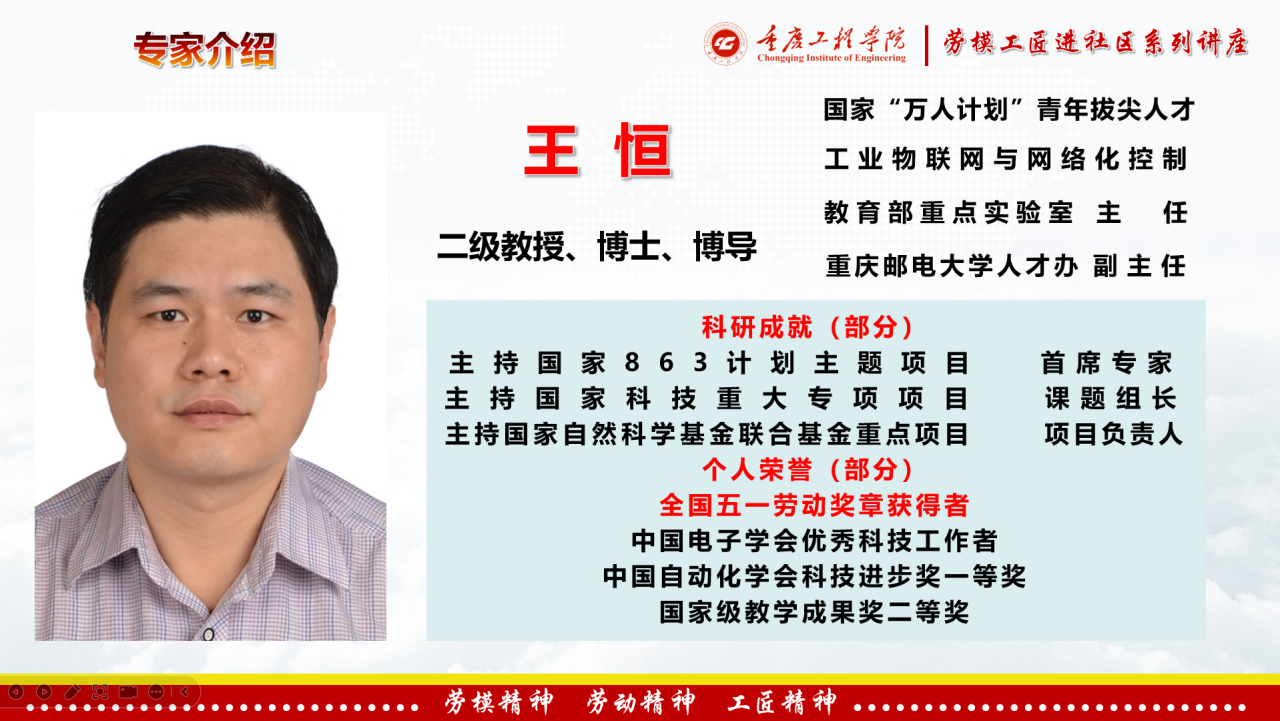专家介绍——王恒:重庆邮电大学,二级教授,博士生导师,全国五一劳动奖章获得者,工业物联网与网络化控制教育部重点实验室主任,国家青年拔尖人才,国家863计划主题项目‘全互联制造网络技术’首席专家。