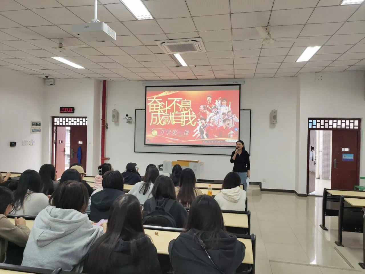 覃薇老师通过巴黎奥运会视频《生而为赢》点燃同学们的热情,让同学们深受中国健儿精神鼓舞,誓将以健儿为榜样,砥砺前行,不负青春,希望同学们能将奥林匹克精神和中国体育精神转化为自己的动力,努力奋斗,为实现自己的梦想而拼。
