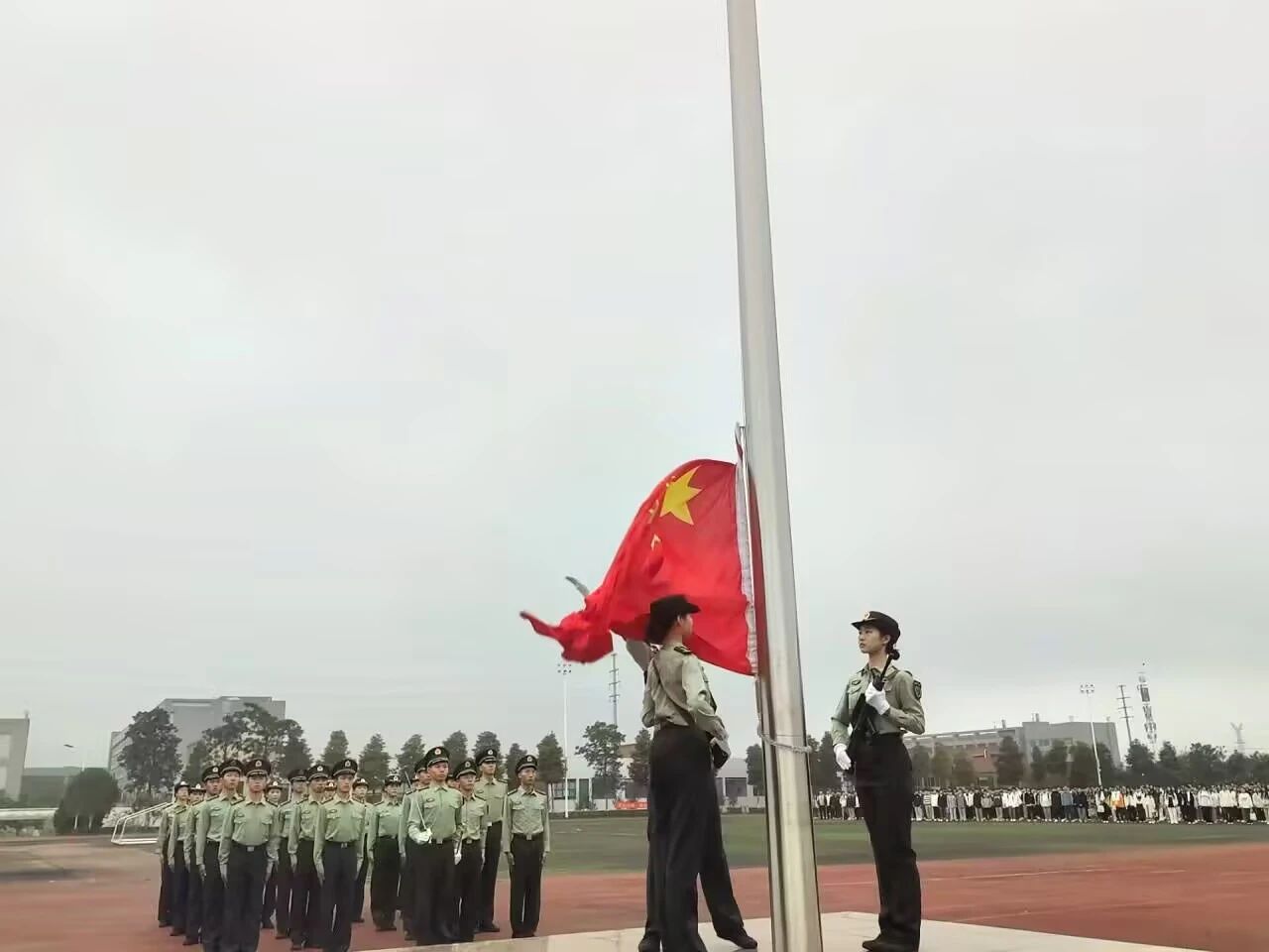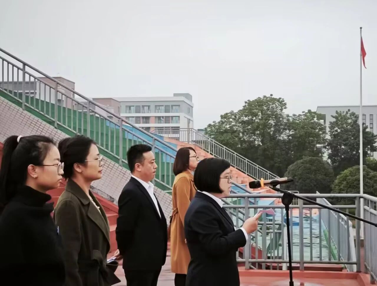 红旗迎风招展后,学生代表唐籽怡同学分享了大学规划和个人成长思考,呼吁同学们做好大学规划,迈出人生新步伐,坚持文明修身、善思勤学、事事笃行。李婧老师就“爱国爱校”这一主题,向同学们提出建议,以实际行动去践行,逐步适应大学生活,明晰学习目标,做好人生规划。