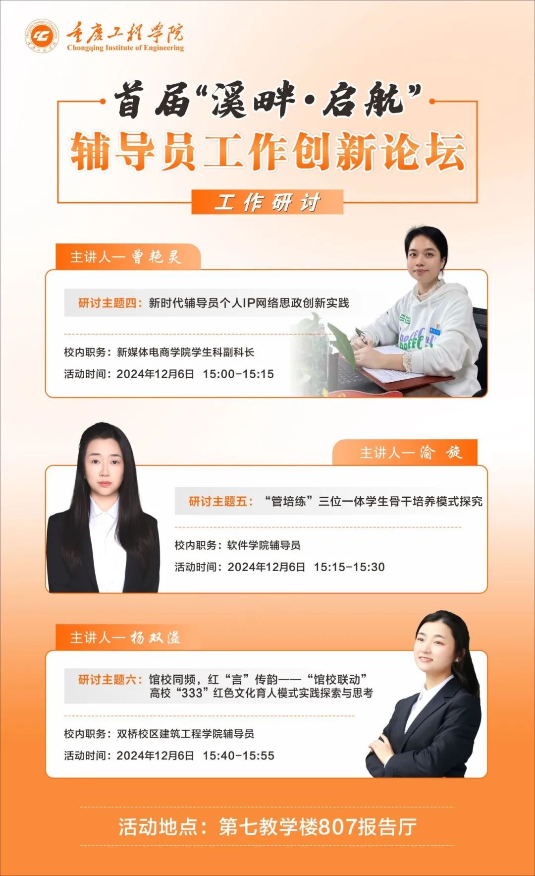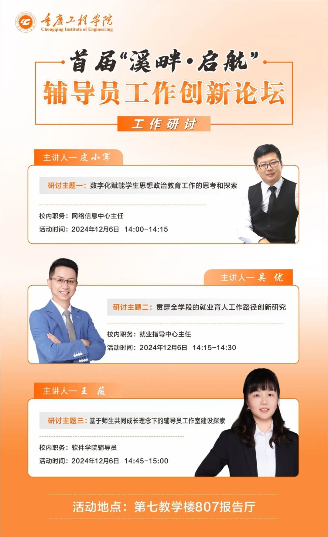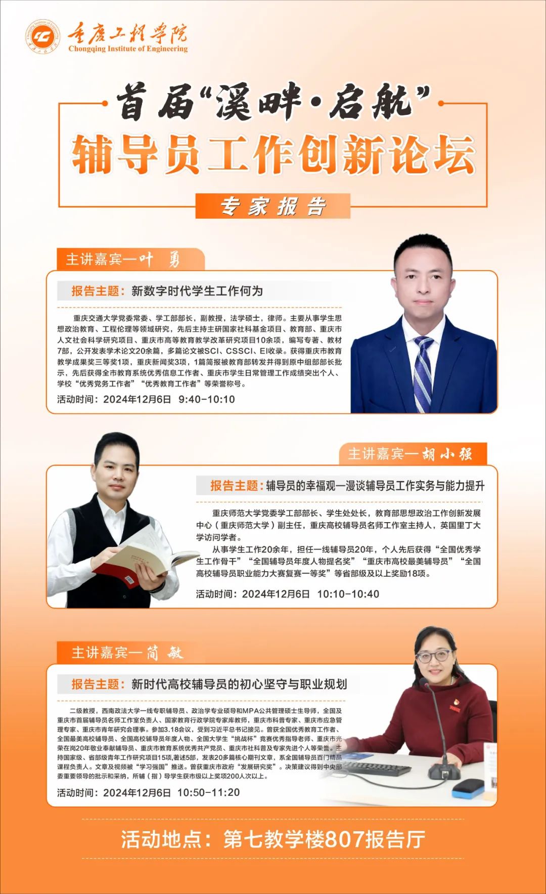 重庆工程学院首届“溪畔·启航”辅导员工作创新论坛是一个新的起点,它象征着我校对辅导员工作的高度重视,也为辅导员团队注入了创新的活力。我们期待通过此次论坛,能够激发更多的创新思维,形成一系列具有推广价值的工作模式和方法。让我们携手共进,以创新为驱动,为学生的成长成才保驾护航,为学校的教育事业发展添砖加瓦!
