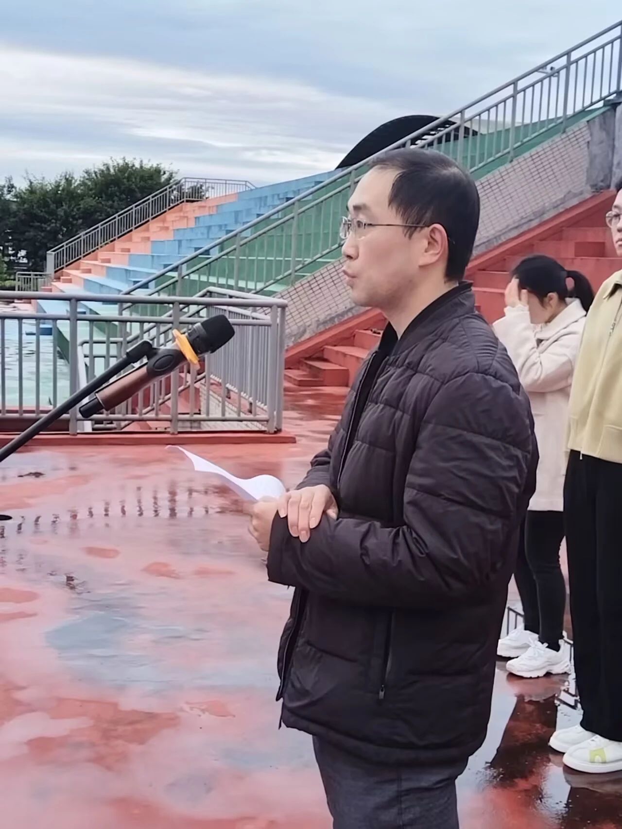 近日,双桥校区举行了第12周升旗仪式,本周升旗仪式由数字艺术学院分团委承办。重庆工程学院双桥校区管委会教学工作办公室主任兼教务处处长助理吴诗奎、数字艺术学院思政兼职辅导员曾红霞、数字艺术学院全体辅导员以及24级全体同学参加。