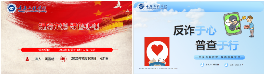 2025年3月9日晚,为了提升大学生的自我保护能力,进一步关爱同学们的身心健康,各班辅导员积极组织筹备反诈知识宣传与心理健康普查主题班会教育课,旨在增强同学们反诈能力,了解同学们的身心健康状况,构建安全的校园环境。