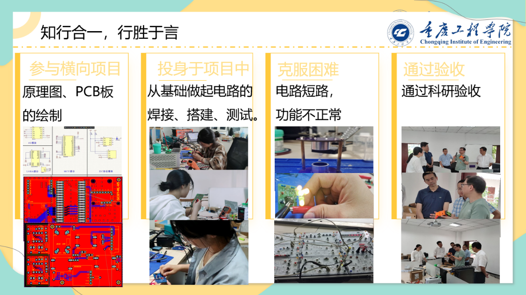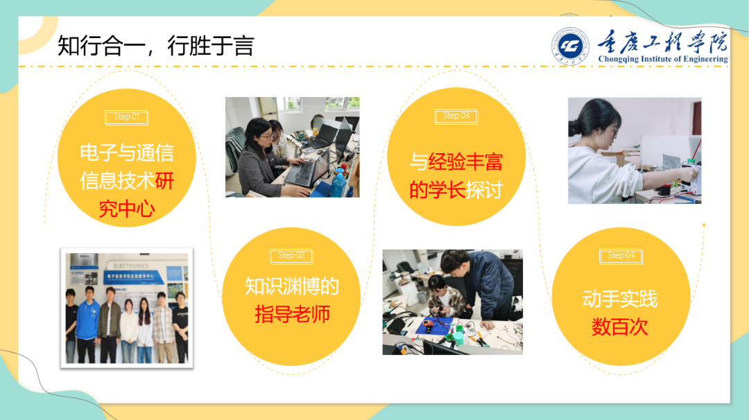 马克思提出“实践是人类认识世界的唯一途径。”她意识到除了掌握通信领域的前沿技术和理论,也应该锻炼自己的实践能力和创新思维,参与科研项目。学校始终坚持校企合作、产教融合的理念,在老师的推荐下,她积极参与学院的“电子与通信技术研究中心”,参与学校与企业的合作项目中,从一开始的一无所知,到后面的轻车熟路。她将理论与实践相结合,大二学年参加各类学科竞赛十余次,其中荣获国家级奖项1项,省市级奖项6项。