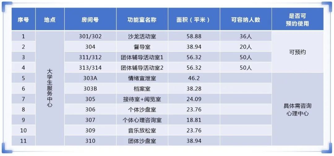 2.学生借用可提前找负责人预约,也可在大学生服务中心305登记使用,305值班时间09:00-12:00,14:00-17:00。