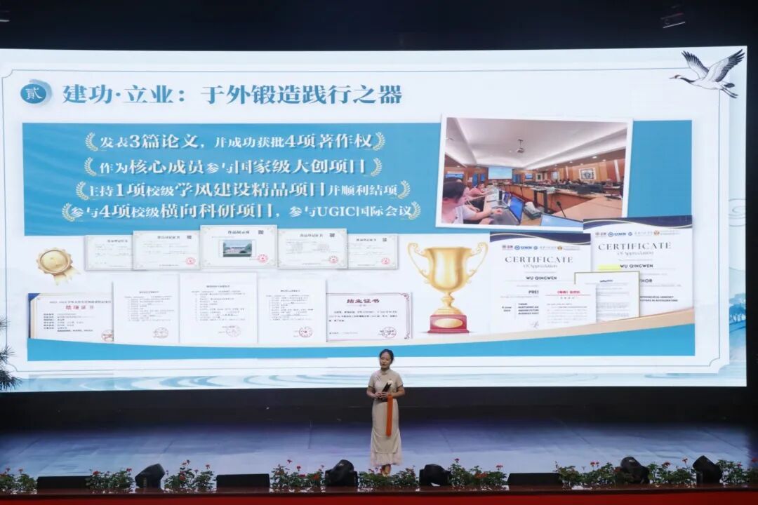 会上,20位通过国家奖学金初审的优秀学子依次登台,围绕学业成绩、荣誉奖项、竞赛成果、社会实践等多个维度,生动讲述了各自的成长历程与奋斗故事。他们不仅展示了扎实的专业功底和出色的综合素养,更以真实感人的经历,诠释了坚持与努力的意义。现场气氛热烈,掌声不断,充分彰显了重工学子追求卓越、勇于拼搏的青春风采。