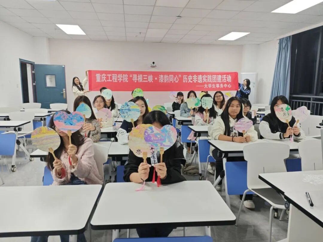 活动伊始,团建负责人总结并公布上两个月考核情况,揭晓 “月度之星” 评选结果以激励成员。随后,主持人围绕三峡非遗文化,介绍传统漆扇的历史背景与工艺特色,带同学们感受地方文化魅力。漆扇制作体验环节,成员们积极动手,在素扇上勾勒描绘,沉浸式体验非遗技艺。现场氛围专注热烈,同学们加深了对传统文化的理解与认同。活动最后全体合影,此次活动既增强团队凝聚力,又提升同学们对三峡历史文化的保护意识,为中心后续工作注入新活力。