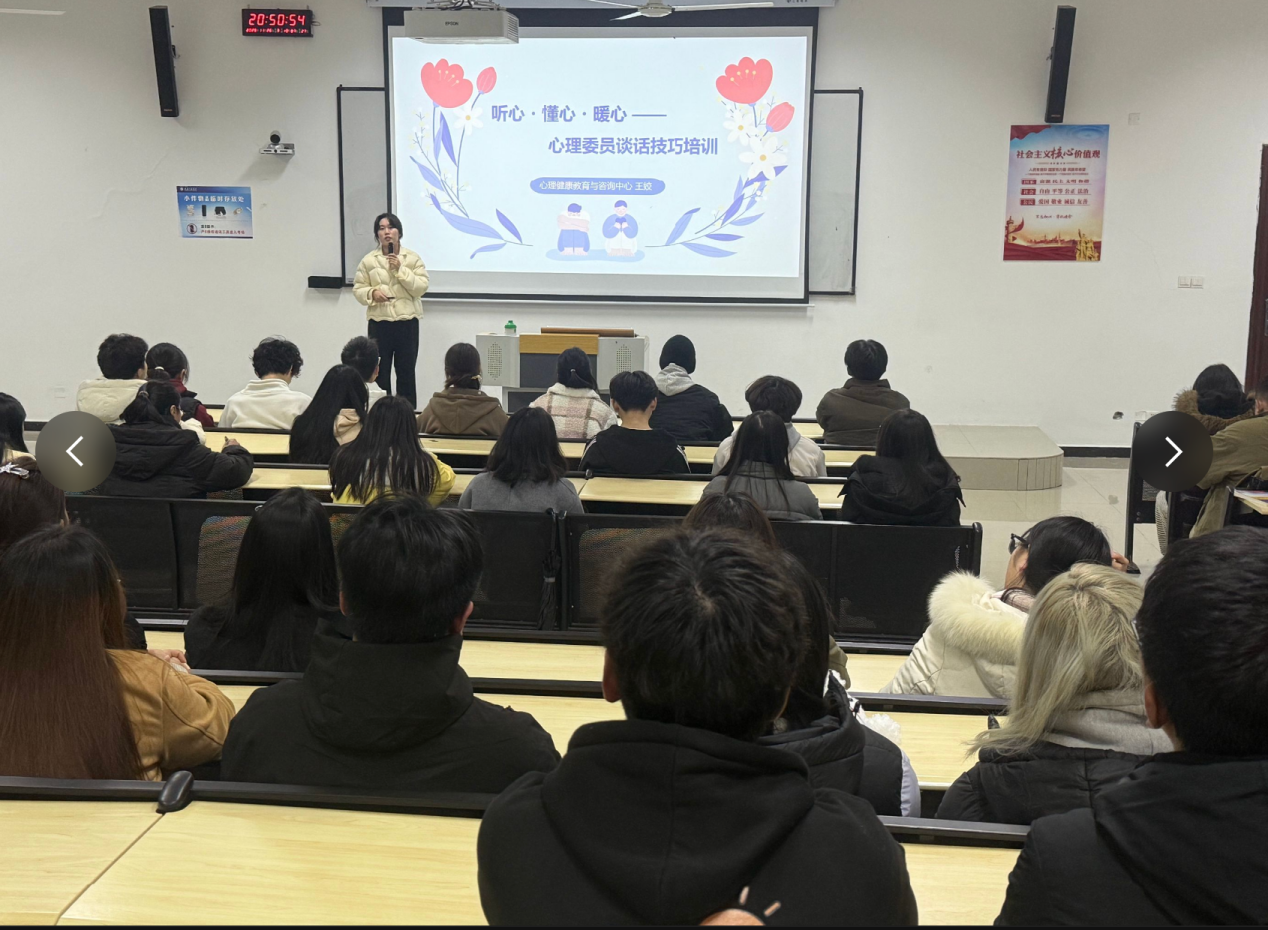 为筑牢心理委员队伍专业根基,提升朋辈辅导实战能力,充分发挥心理委员在班级心理育人工作中的桥梁纽带作用,心理健康教育与咨询的王姣老师开展了