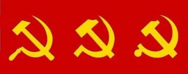 1927年10月15日,中共南方局、广东省委联席会议通过《中共广东省委第十四号通告:最近工作纲领》,明确指出:“废除青天白日旗,改用红旗,以斧、镰为标志。”基本框定了党旗的轮廓和构成要素。1933年4月,中共中央决定,把党旗党徽中的“斧头”图案调整成为“锤子”图案。由于战事频繁,这项决定未能全面贯彻执行。此后,在党旗的有关表述与制作使用中,出现“斧头”和“锤头”混用的现象。1945年4月,中共七大在延安召开,会场上的六面党旗鲜艳夺目。这是我们党第一次在全国代表大会上悬挂党旗。