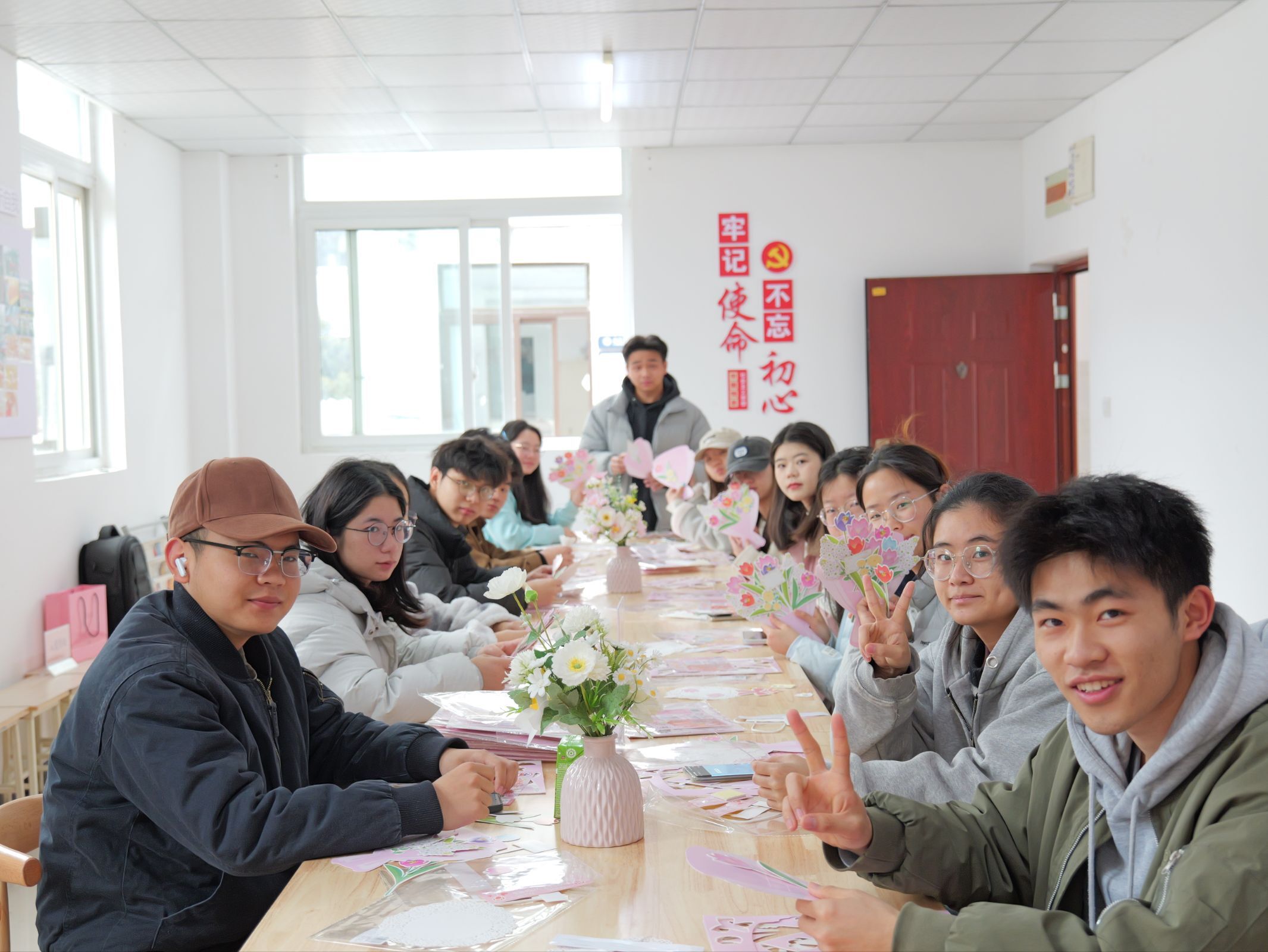 上午10,和园5158室的心意手工环节率先温情开启。社区学生骨干们齐聚一堂,手持彩纸、丝带等手工材料,巧手制作简易花束与精美贺卡,将对老师们的感恩与祝福凝于笔尖、融于作品,一笔一画皆是心意,一枝一叶满含温情。同学们亲手将这份手作礼物赠予心中想要感恩的她和她们,纸短情长,小小的手工作品,成为学子与教师之间传递情感的温暖纽带。