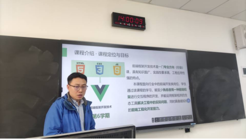 按照安排,本次说课共有10名教师走上讲台进行了说课。各位老师在说课中都展示了在自己所教授课程上的一些创新的做法和亮点,其中石磊主任提出了在Web前端开发技术课程中对学生的一些新要求,争对教师授课方式、课程思政情况等方面提出了新的见解,在本学期中,希望能够把课堂教学与课堂后测相结合,全方位巩固学生所学知识,让学生能学得懂、学得牢、用得好;李海力老师从课程链路的角度详细阐述了客户端脚本开发技术与前导课程的技术递进关系;刘阳老师的前端框架开发技术主要从学情分析方面对学生能力和基础进行了科学的分析并制定了有针对性的教学方法;李欣欣老师分享了UI设计课程中以赛促学的经验。