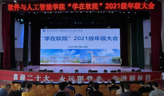 (文/图 软件与人工智能学院 李阳)为了更好的帮助2021级本科生熟悉南泉校区,规划学习生活,9月28日,软件与人工智能学院在学术报告厅召开“学在软院”2021级年级大会。院长周龙福、党总支书记刘子菱携全体院领导、系主任、21级专业班导师、21级辅导员参加,会议由学生科长李阳主持。