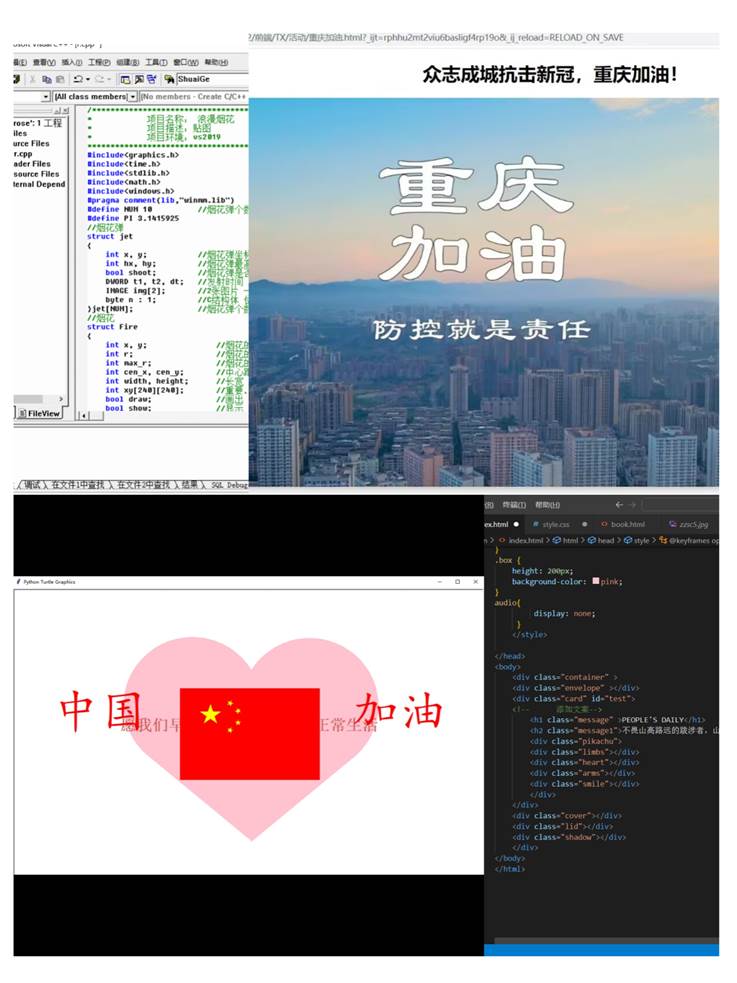 本次活动以征集作品为主,用代码输出图案或文字,诉说对朋友、对学校、对祖国的热爱,敲击出独属于理科生的浪漫。活动共计收到130余份作品,其中6份特色作品脱颖而出。