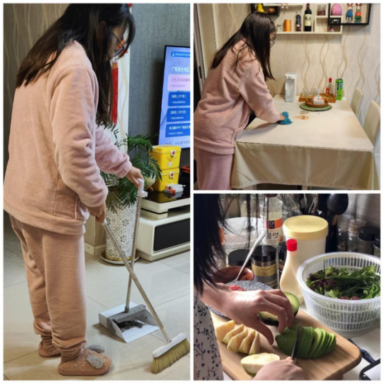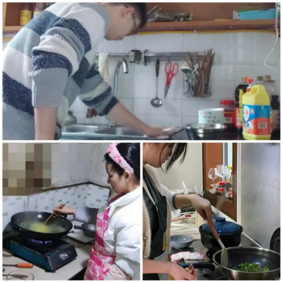 同学们还劳逸结合在课余时间做家务劳动,承担家庭责任,在当今疫情下仍然热爱生活,保持积极乐观的态度。