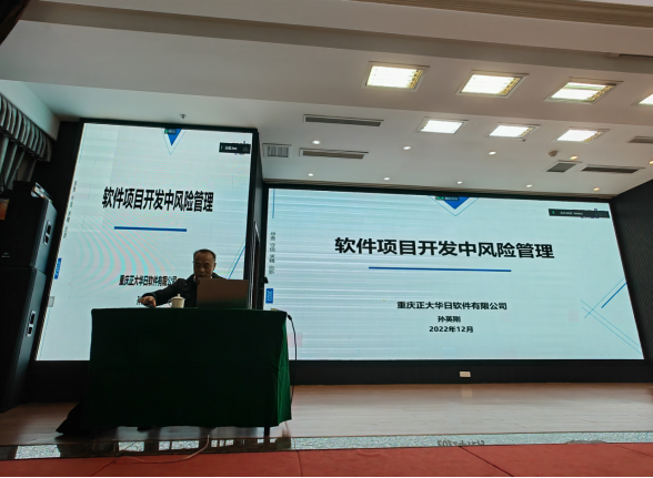 (文/图 软件与人工智能学院 石磊 宁丽丽)为进一步加强和提升全院教师软件项目管理能力,了解软件工程项目管理发展趋势,助推软件开发类课程高质量发展,12月30日,软件与人工智能学院在东温泉秀泉映月酒店举行“项目开发中的风险管理”培训。本次培训由学院副院长李华平主持,邀请重庆正大华日软件有限公司副总经理孙英刚主讲,全体教师参加了此次培训。