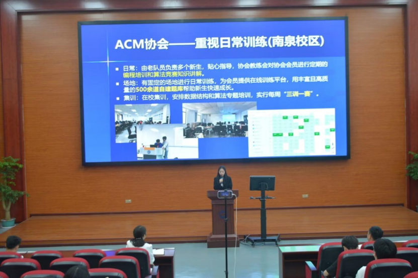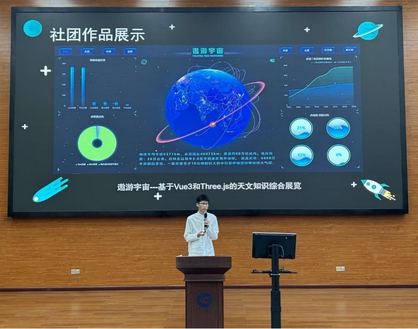 大数据社团、人工智能社团、FunGame游戏创作社、ACM协会、鸿蒙研习社、软件测试联盟协会、VR社团7个专业社团分别从社团定位、社团活动、社团成果、未来展望等方面展开分享社团活动,共同提升专业技能。