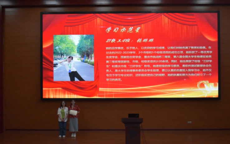 再次,会议对十佳示范星和最优寝室进行表彰颁奖获奖同学分享的学习经验和心得以便其他同学借鉴和学习。