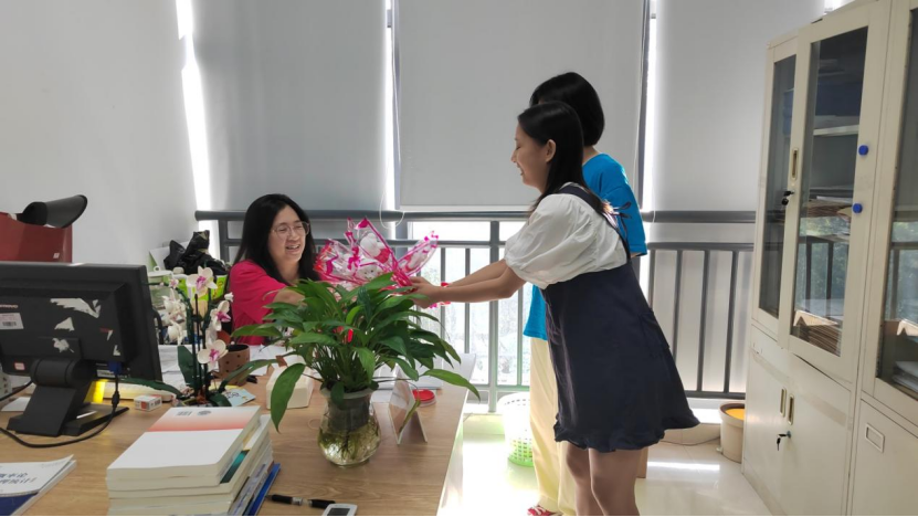 学院学生代表就已经为老师准备好了手写贺卡和小熊鲜花,新生代表们则在学长学姐的带领下将办公室打扫得井井有条、干净整洁......同学们用满怀深情的感恩话语和自己的积极的行动为每一位老师献上了最诚挚的祝福。