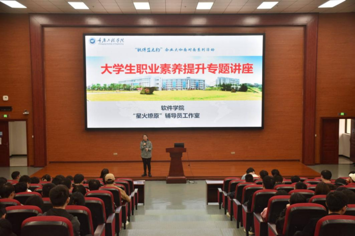 (文/图 软件学院 伯健飞)10月25日,软件学院于在七教报告厅开展“软件蓝之约”企业大咖面对面——大学生职业素养提升就业专题讲座。特别邀请重庆壳牌能源有限公司对外事务总监杨皓军来校主讲,学院党总支书记刘子菱、就业科副科长滕攀及部分毕业班辅导员、大四学生共二百五余人参加讲座。