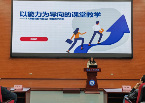 公共技术教研室陶雪娇教授围绕应用型本科课程如何培养学生工程能力,做了以能力为导向的课堂教学——以数据结构与算法课程为例交流发言,生动展示了应用型本科的课程课堂教学如何培养学生的能力和素质。