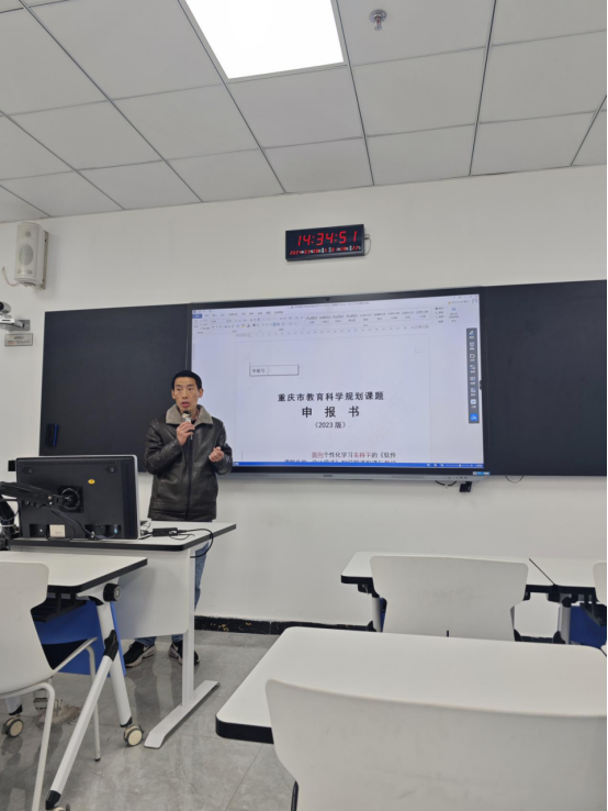 在交流会上,李横教授首先带领与会老师们深入阅读了与重庆市教育科学规划课题相关的文件。他分享了自己在选题、经费、资助标准等方面的丰富经验,为在座老师们提供了宝贵的指导和建议。