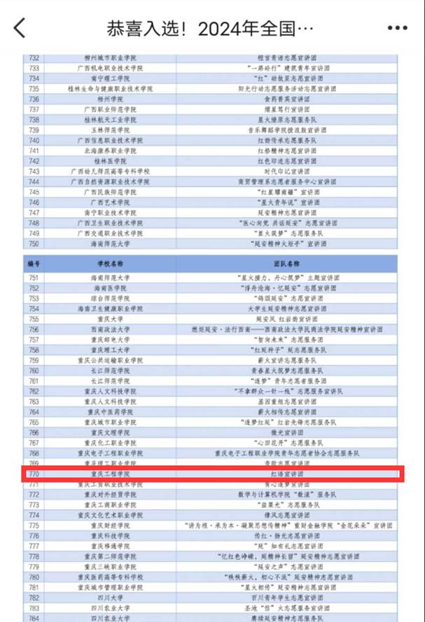 为深入学习宣传贯彻习近平新时代中国特色社会主义思想和党的二十大精神,落实“强国复兴有我”群众性主题宣传教育活动相关要求,引导动员青年学生大力弘扬延安精神,团中央青年志愿者行动指导中心、国家电力投资集团有限公司、共青团陕西省委、中共延安市委近日联合发布了《关于遴选2024年全国大学生延安精神志愿宣讲团的公告》。各高校志愿服务团队的广泛关注和积极参与。主办单位对所有申报材料进行了认真审阅,最终共遴选出北京大学、北京航空航天大学、北京理工大学等855所高校的1000支大学生志愿服务团队。重庆工程学院软件学院红语宣讲团脱颖而出,成功入选。