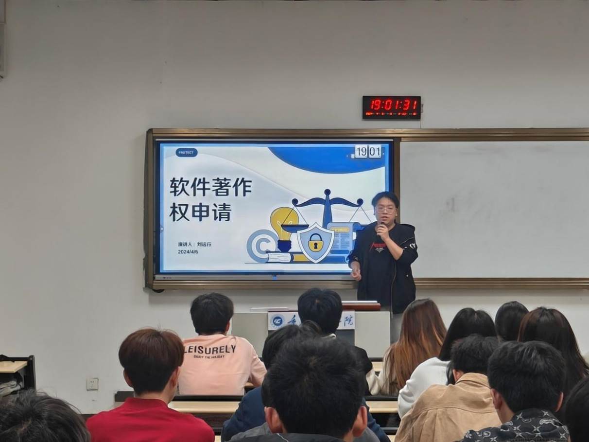 (图/ 软件学院 沈婷婷) 为帮助同学们了解软件著作权申请的流程和注意事项,46日晚,21数媒技1-2班在六教103教室开展“软件著作权申请”主题班会。本次班会由21数媒技2班刘远行同学主讲。