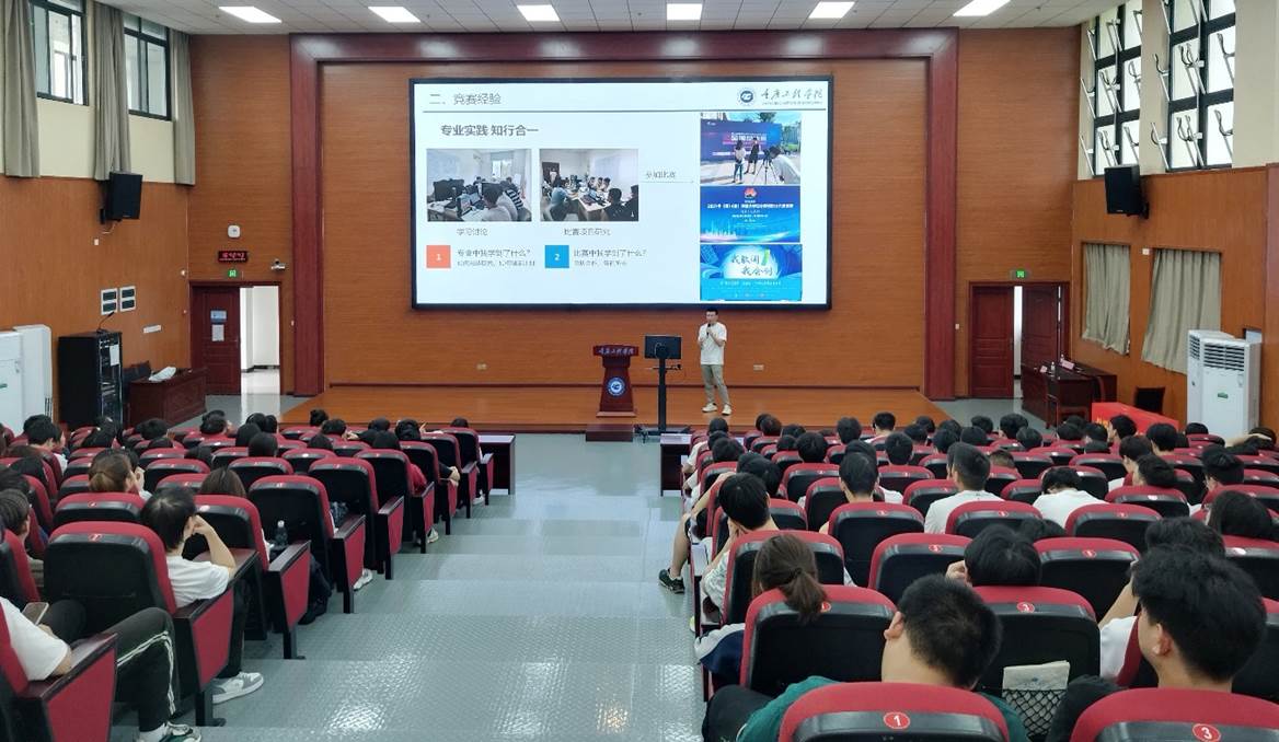 在南泉校区,软件学院2022届优秀毕业生、现就读于武汉大学计算机学院的硕士研究生王康也应邀回校,再次加入到宣讲队伍,他目前已获得百度、小米、京东、联想、快手等大厂offer,他从学习历程、竞赛经验、考研分享、求职面试及岗位选择五个方面为同学们分享了学习方法和职场经验。