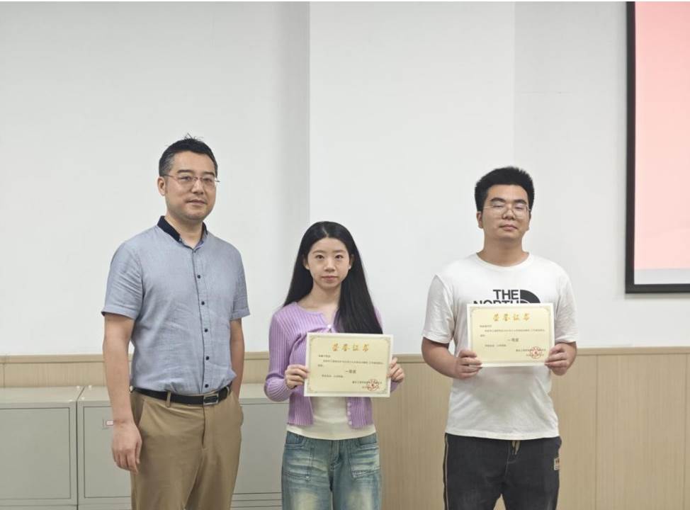 接着由赵毅所长宣布实训奖励情况,此次颁奖活动获奖的学生共10人,获得一等奖的学生2人、获得二等奖的学生4人、获得三等奖的学生4人。同学们按获奖名单依次上台领奖,由赵毅所长给学生们颁发奖状,并且一起合影拍照。