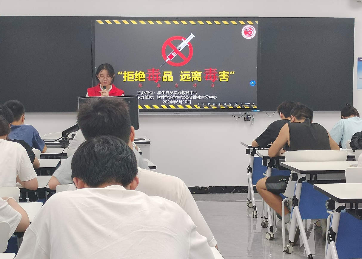 (软件学院 / 徐莉清)为提高同学们对毒品危害性的认识,增强校园整体的禁毒意识,保护广大学子身心健康,维护社会稳定和公共安全,软件学院学生党员实践教育分中心于2024620日下午举办一场以“拒绝毒品,远离毒害”为主题的禁毒宣传会活动。