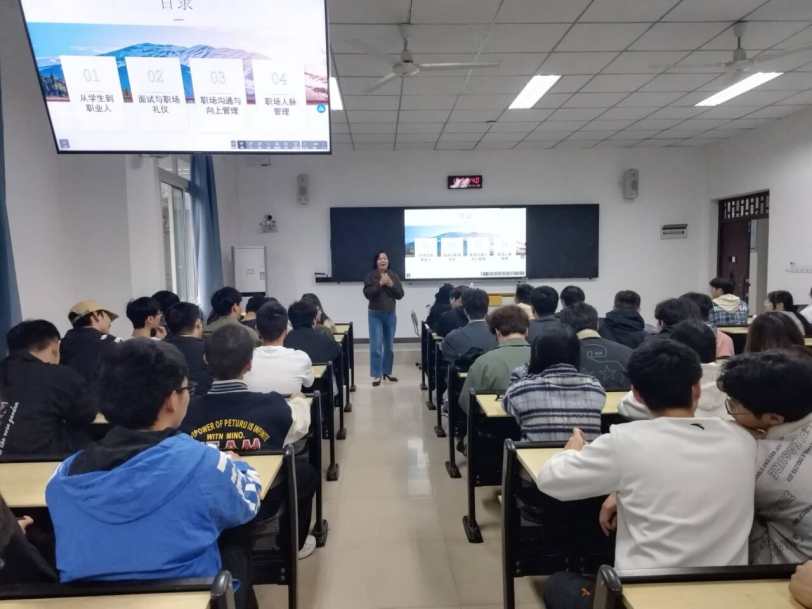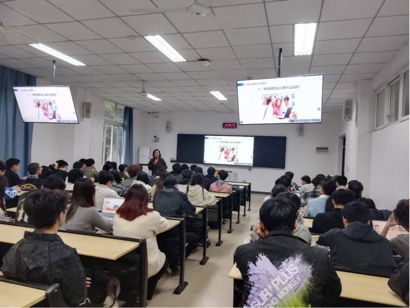 (图/文 软件学院 滕攀 余佳洁)为了帮助初入职场的同学顺利完成角色转变,增强自身职场礼仪修养,提升职场竞争力,软件学院于11月12日在6112教室开展了“一个新人的成长之路”就业专题讲座。活动线上线下结合,共计150余名同学参加,由学校素质教育中心邹春霞教授主讲。