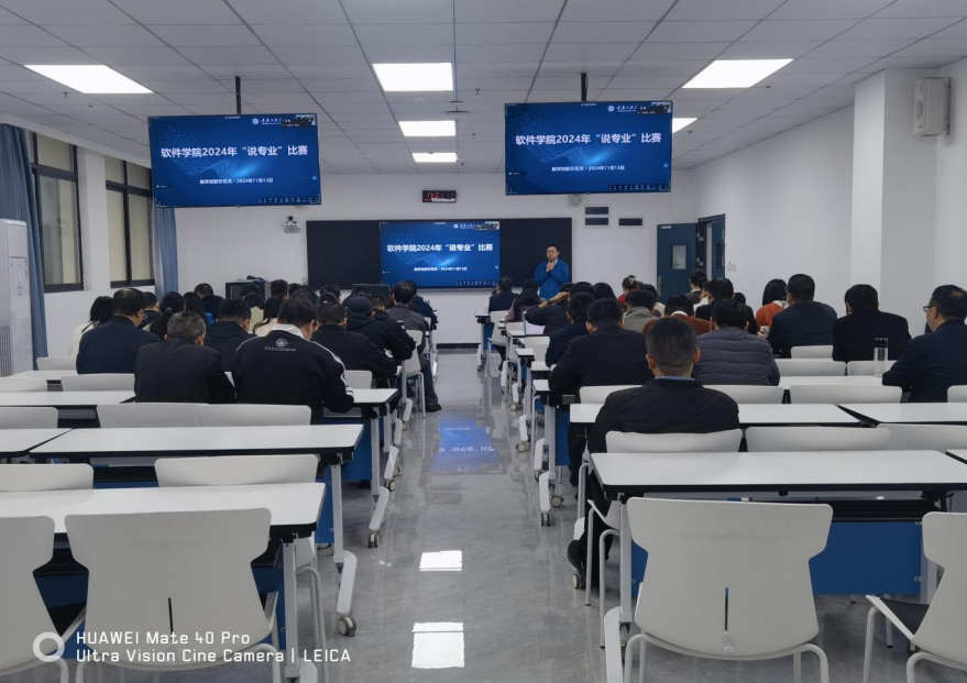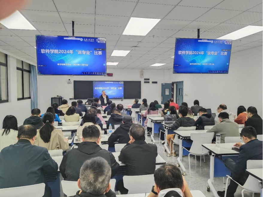 (文/图 软件学院 梁书娟) 为落实市教委和学校专业负责人说专业活动,进一步加强全市普通高校本科专业建设,提升人才培养质量。11月13日,软件学院在71201教室举办了“软件学院2024年‘说专业’比赛。学院院长周龙福、学院专业带头人李中学和李横教授担任本次比赛评委,同时邀请学校督导王慧英担任嘉宾,软件学院全体专任教师参加了本次活动。本次活动由软件学院院长助理刘阳主持。